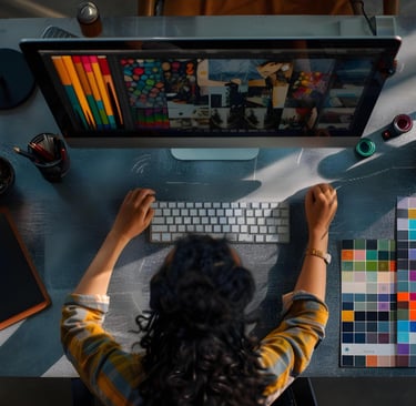 O foco do designer: Um designer estratégico trabalha na construção de sistemas visuais, como identidades de marca e interfaces, garantindo que o material seja funcional antes de ser distribuído.
